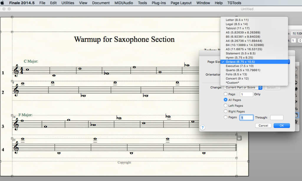 Do you have to create music for marching band, but go through the process of printing it out, resizing it, and printing it again? Well, here’s how to create music to fit in a standard marching band flip folio.