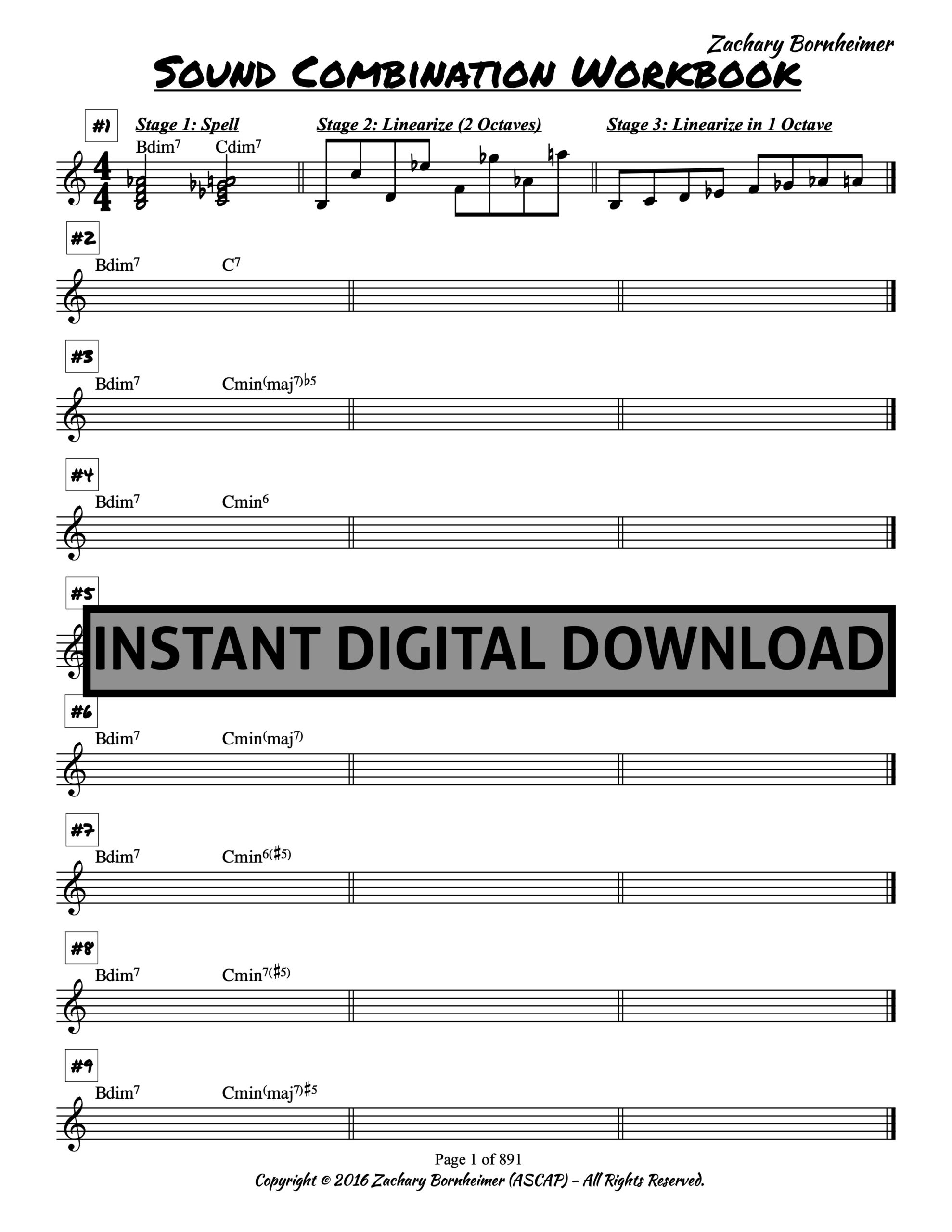 7th chord pairs unlocks a world of synthetic scales and unique internal structures and is often omitted by improvisers during practice. In this nearly 900 page workbook, (just about) every possibility theoretical 7th chord pair is explored.